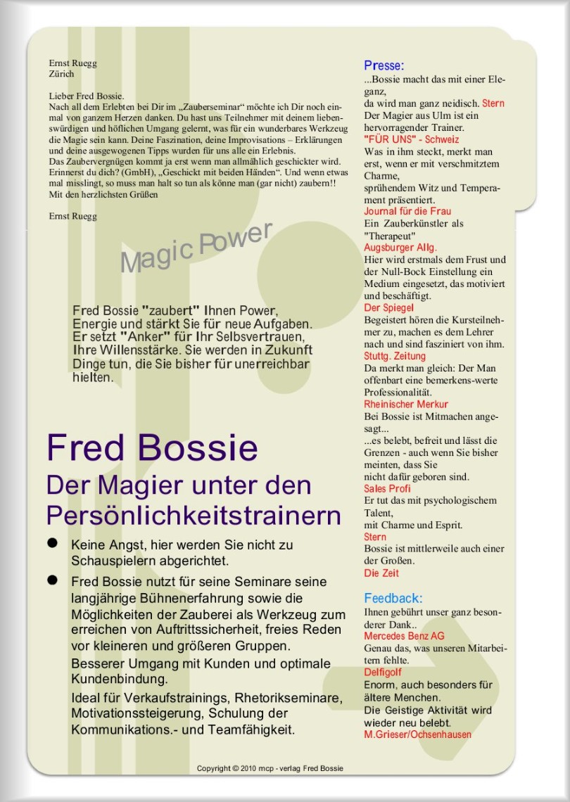Fred Bossie - Zauberer, Trainer,Coach